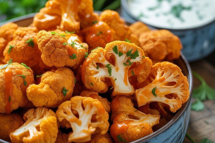 kcalCrispy air fryer cauliflower bites coated in spicy buffalo sauce — a light and tasty snack perfect for any occasion.